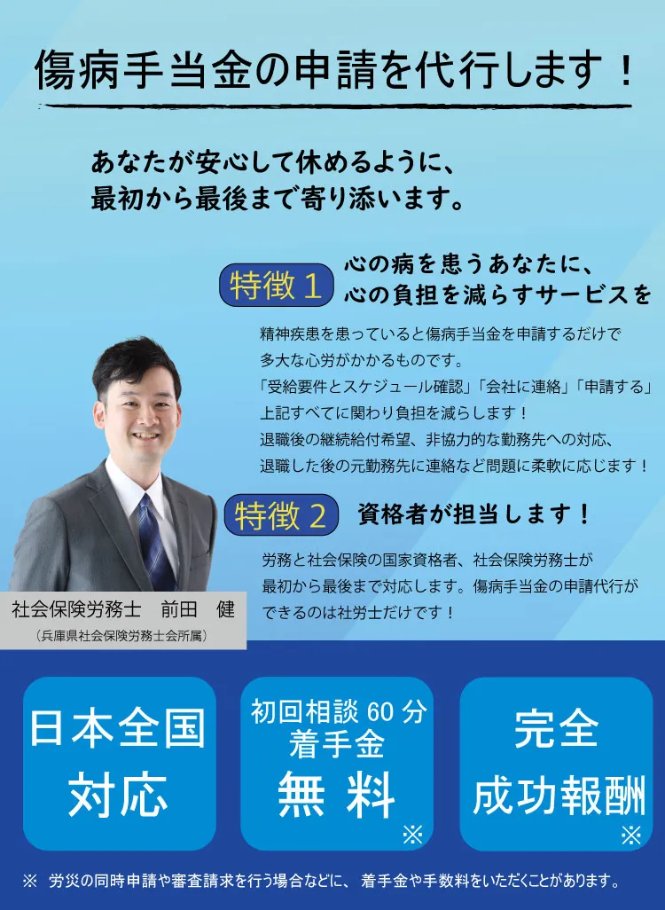 傷病手当金の相談と申請を多数こなす、経験豊富な社労士が直接ご対応!